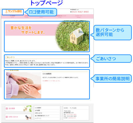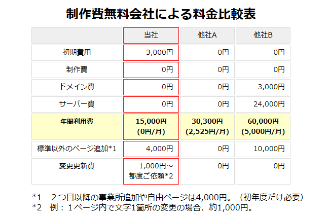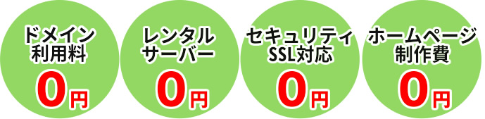 これら2項目だけでも費用が高く、さらにホームページ制作費もかかりますが、当プランですと、あらかじめ内容が決まっていますので、コストを下げることが出来、制作費は0円です。